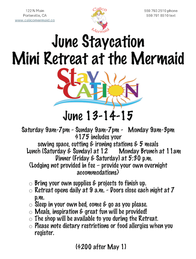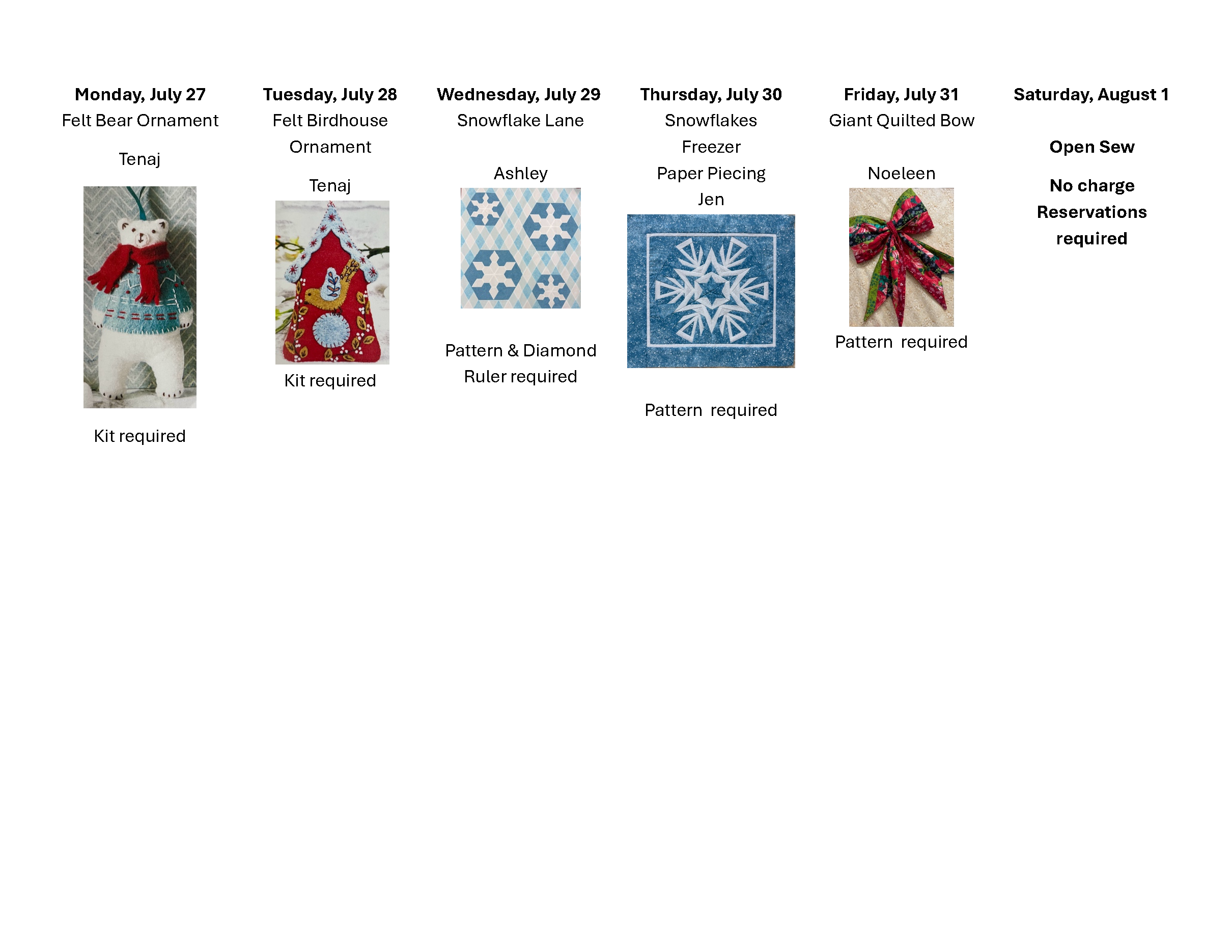 Step into the Magic of the Jolly Jingle Workshop! Get ready for a merry mix of creativity, sparkle, and holiday cheer! Our Jolly Jingle Workshop at the Mermaid is bursting with festive ideas and delightful projects to inspire you for the upcoming season. July 14 - August 1. 6 creative, talented teachers, 16 enchanting class projects. Pick your favorites and make it your own. Choose any 5 classes for $150 Take individual (or extra!) classes for $45 each. Registration opens Saturday, April 11 ![]() ![]()